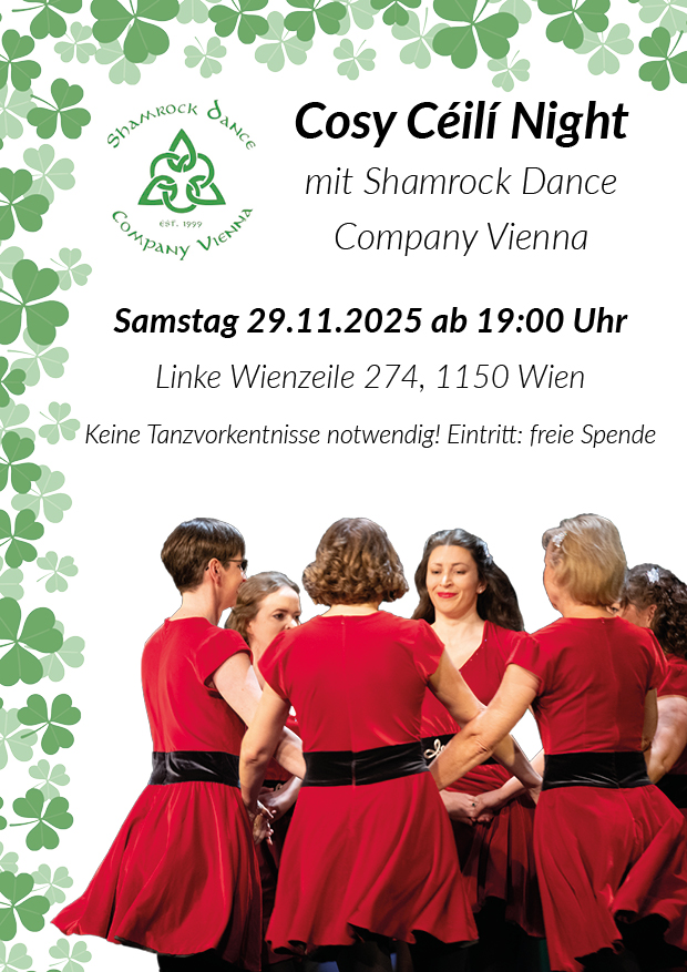 No dance experience needed – Kathi and Mira will guide you through all the steps. Everyone is welcome to join in and enjoy an evening of movement, smiles, and Irish charm!